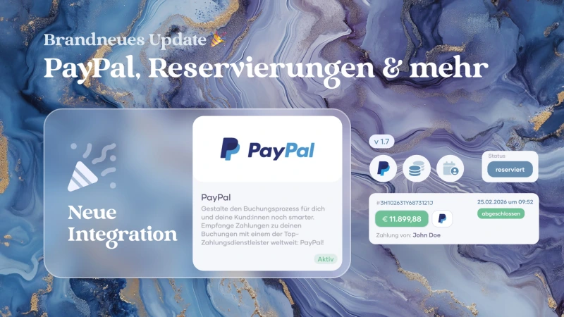 marble booking v1.7 is here! 🎉 New features: PayPal, recording and managing payments, and the brand new reservation function.